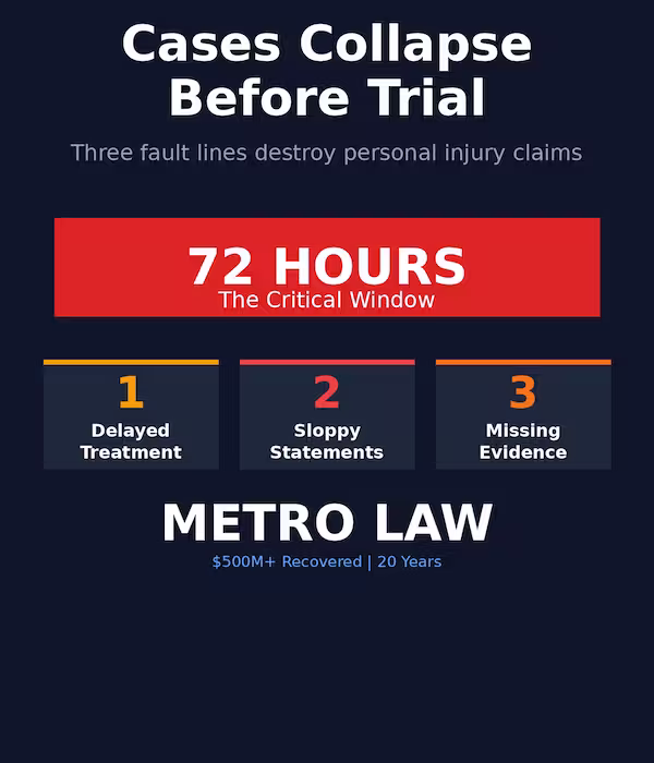 Metro Law has spent twenty years operating inside that window. That is why we have recovered over five hundred million dollars for clients who trusted us in their worst moments. The work is relentless. The results speak louder.